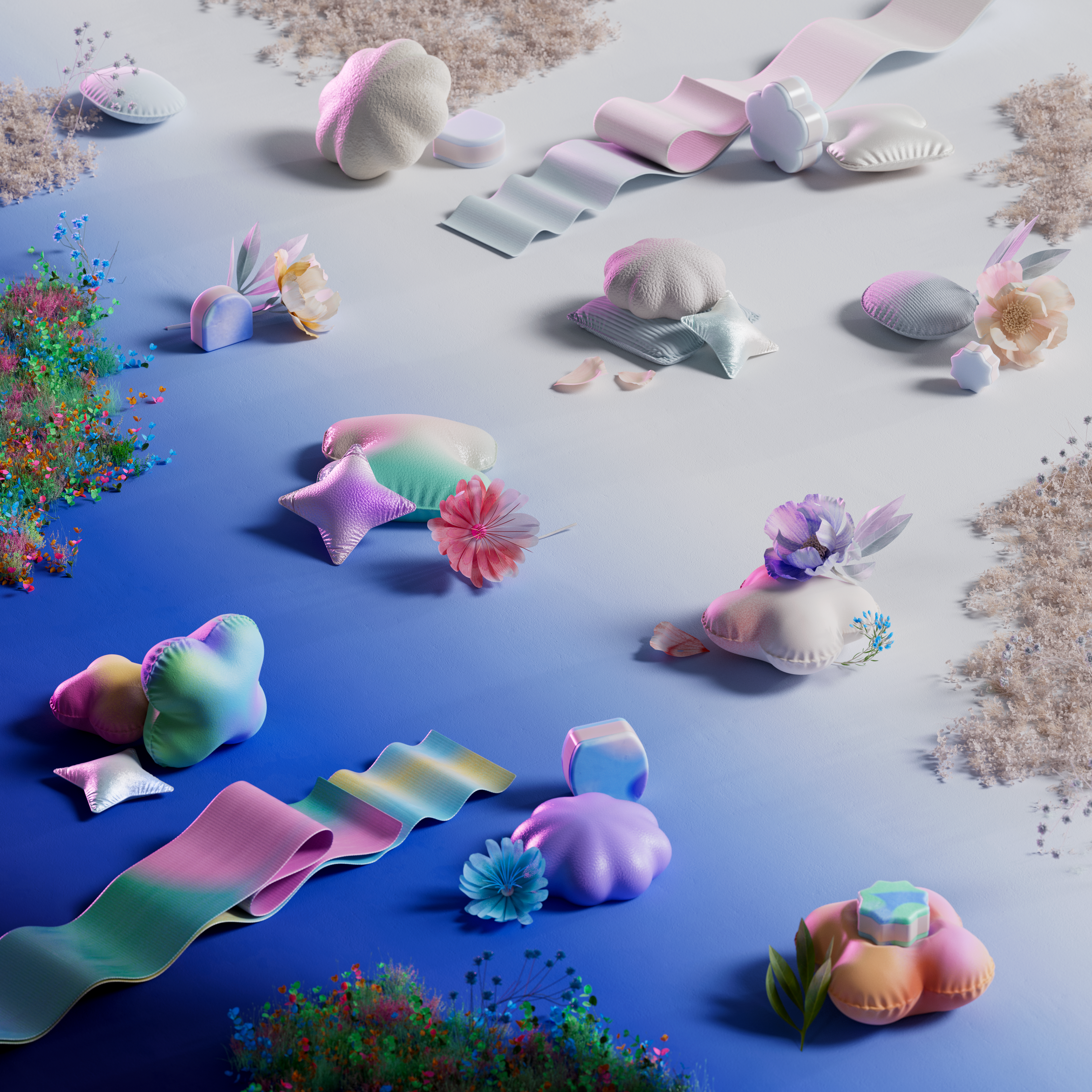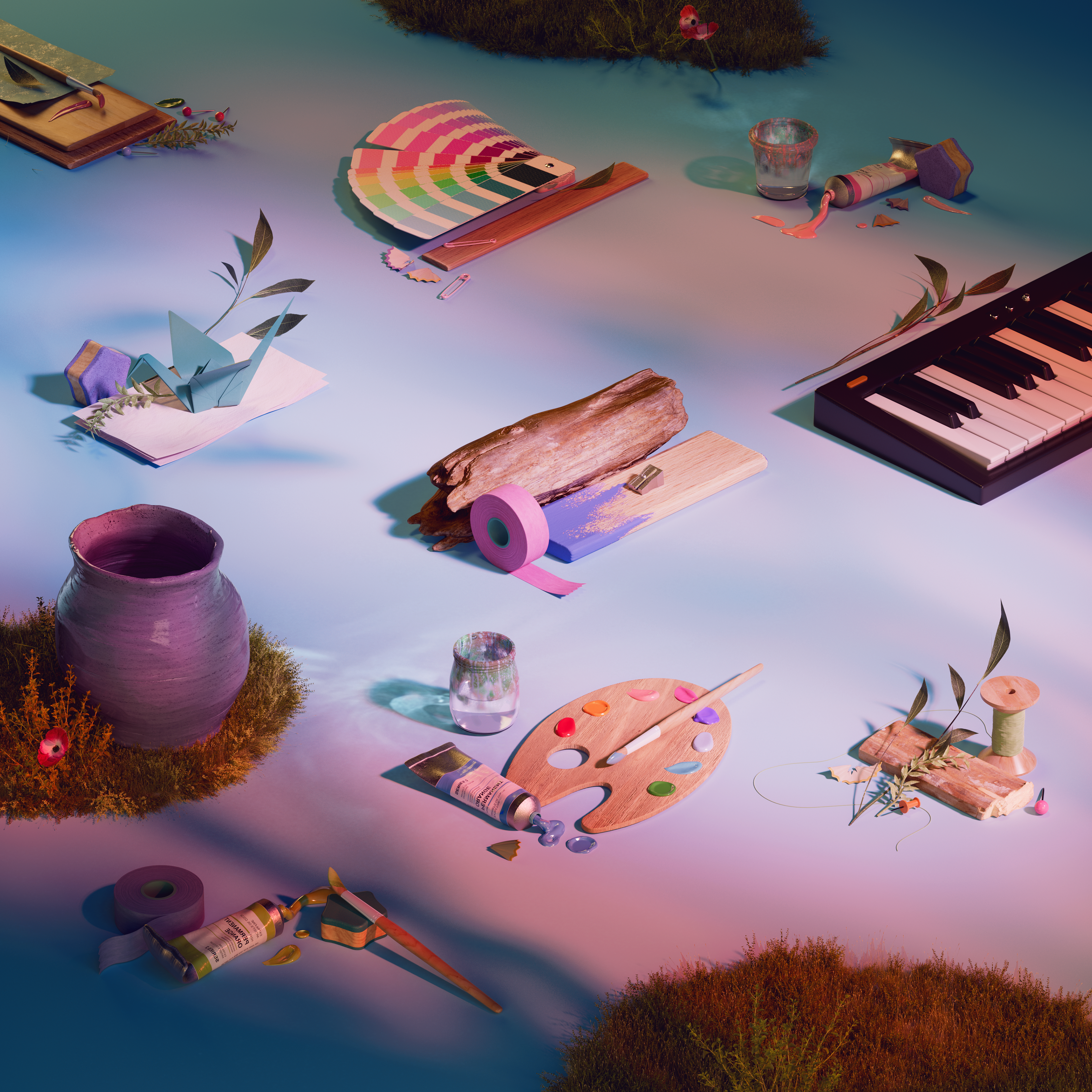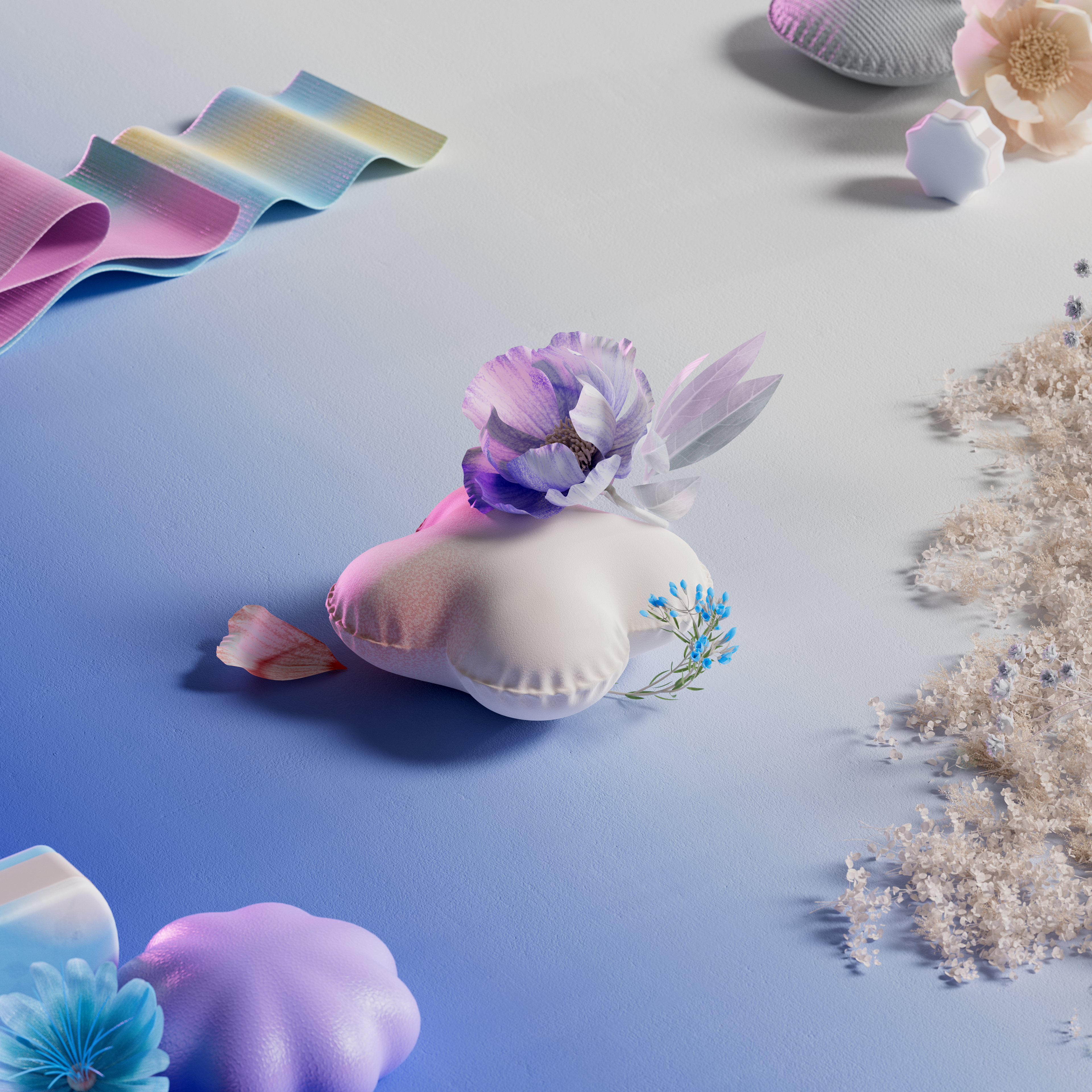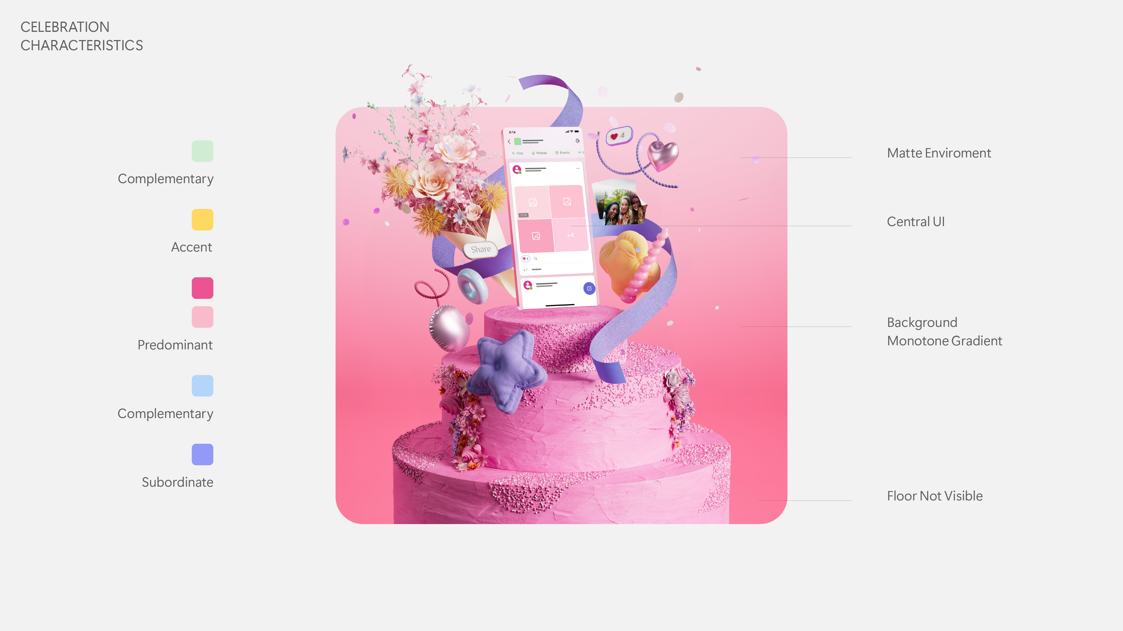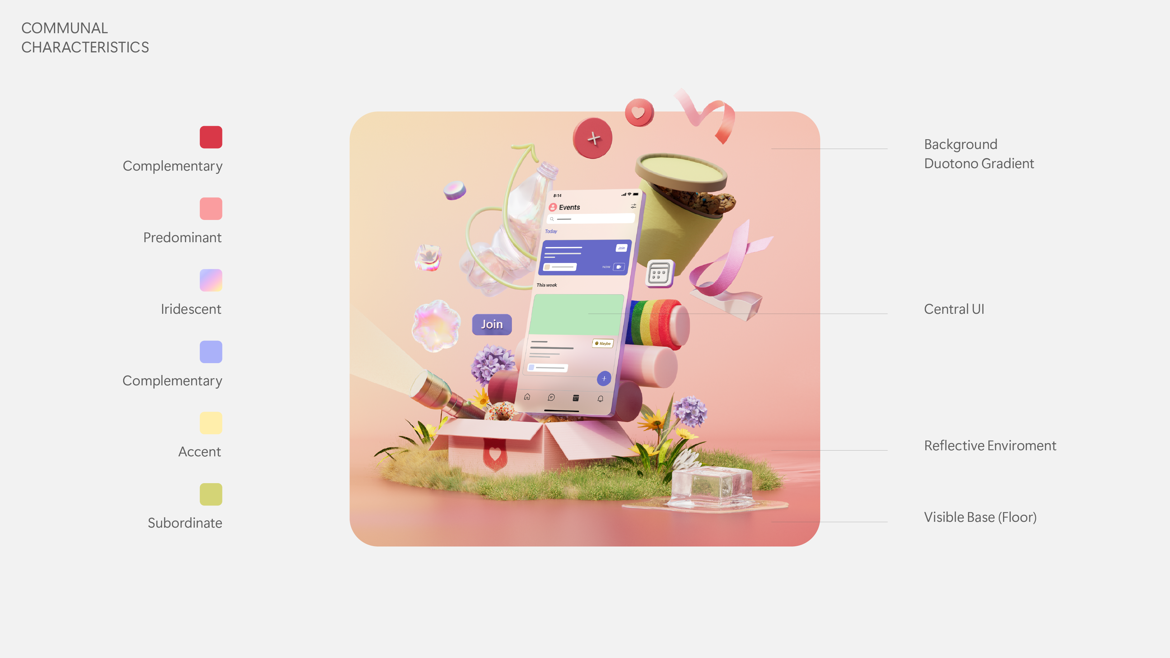 We aim to represent it by a mix of nature with gradients, color reflections and caustics to give a dreamlike touch.