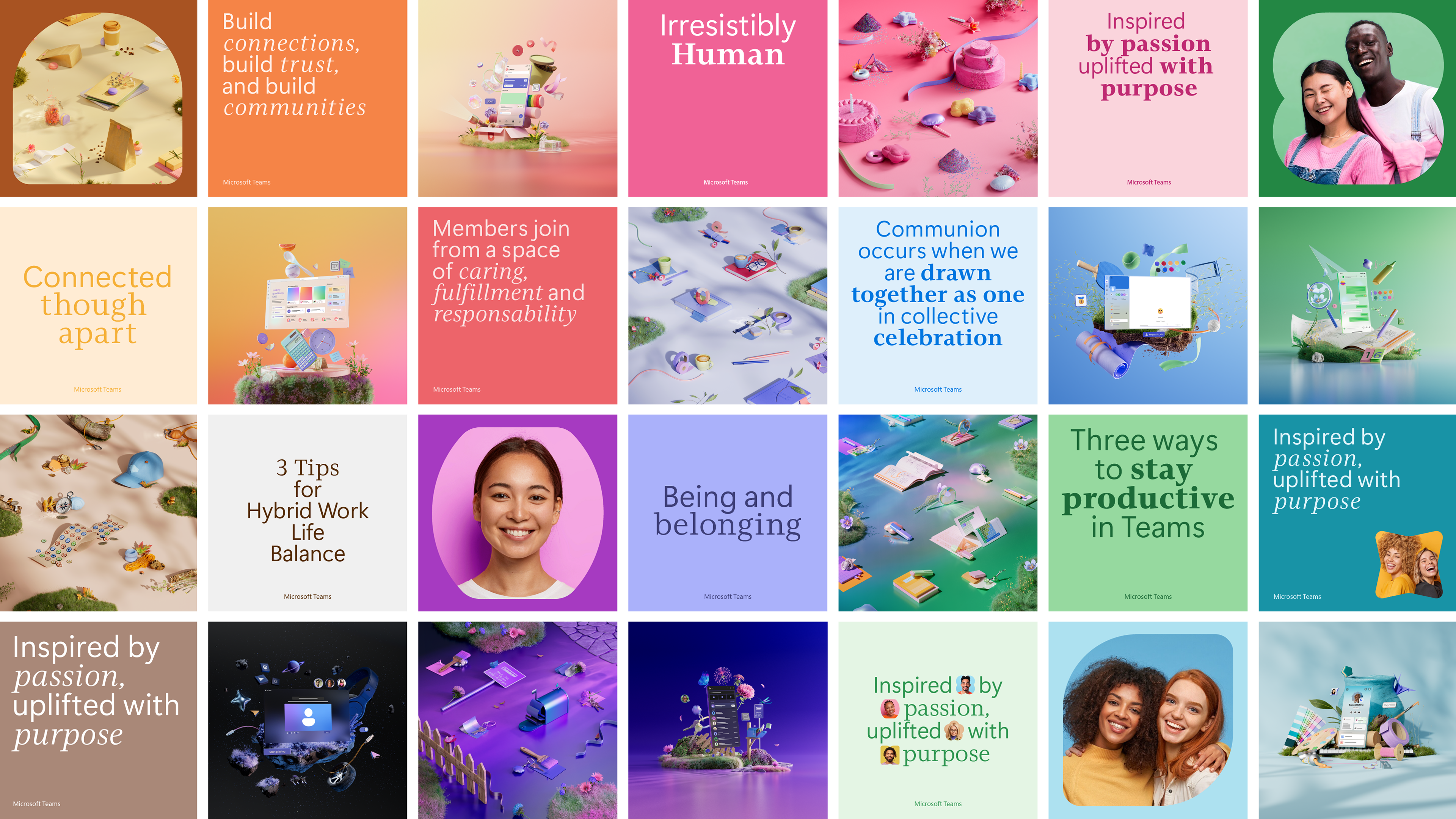 We’ve developed a cohesive system of images and videos to help users select visuals that resonate with their teams. The goal is to showcase the human side of Teams users while fostering a stronger sense of community. By using friendly, engaging metaphors, we aim to inspire people to see Teams not just as a platform, but as a space for meaningful connection and collaboration.