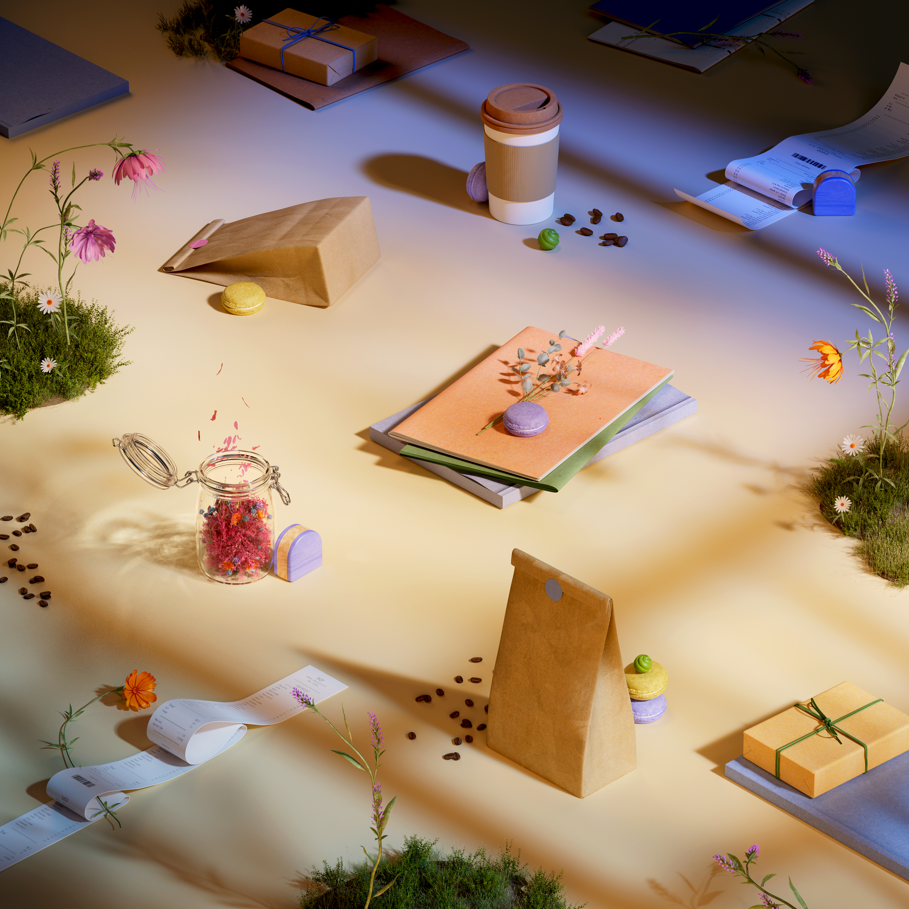 So, we want to glorify our product through dynamic visual compositions, variety of scales, eye-catching color combinations and tactile textures.