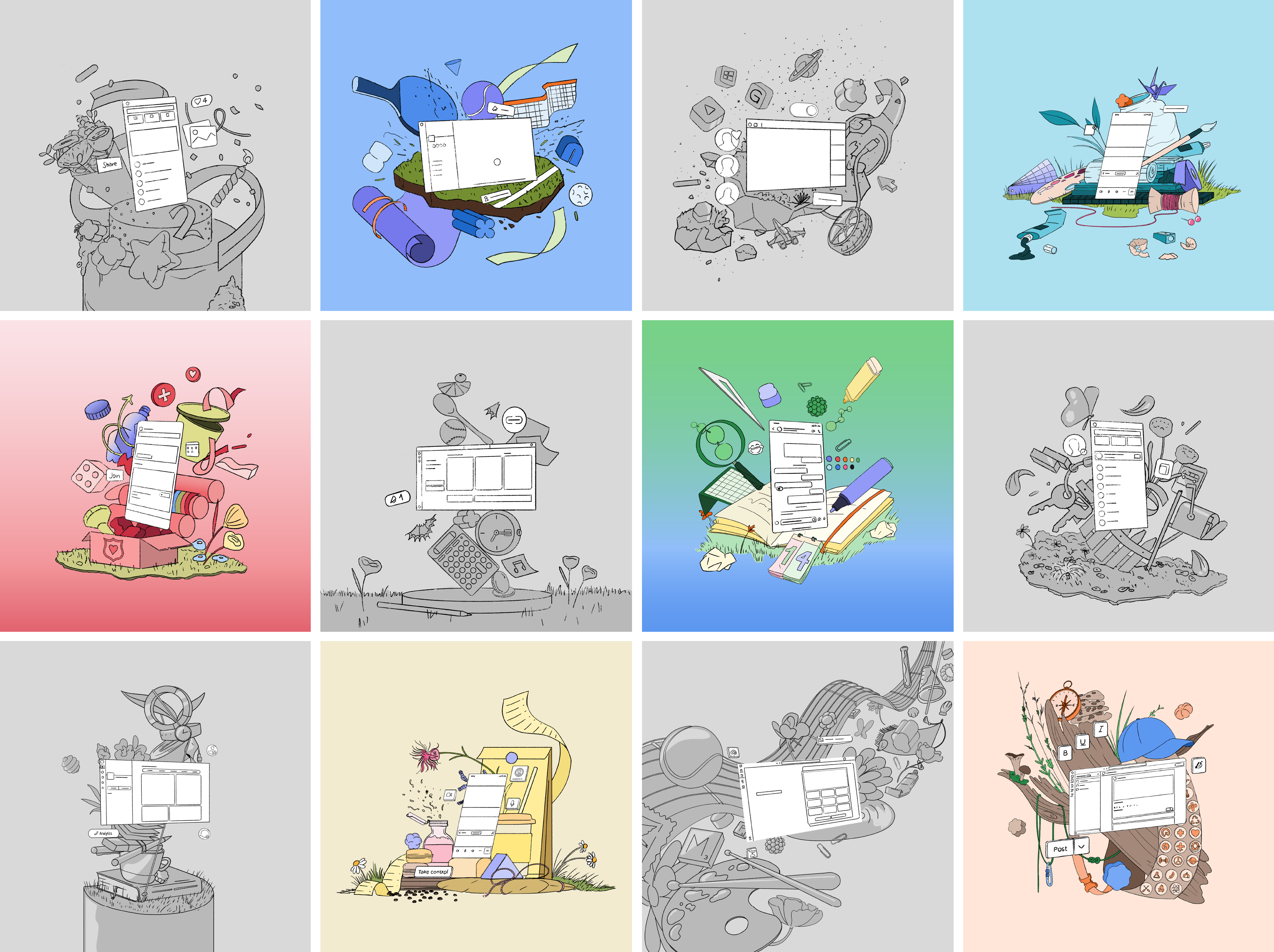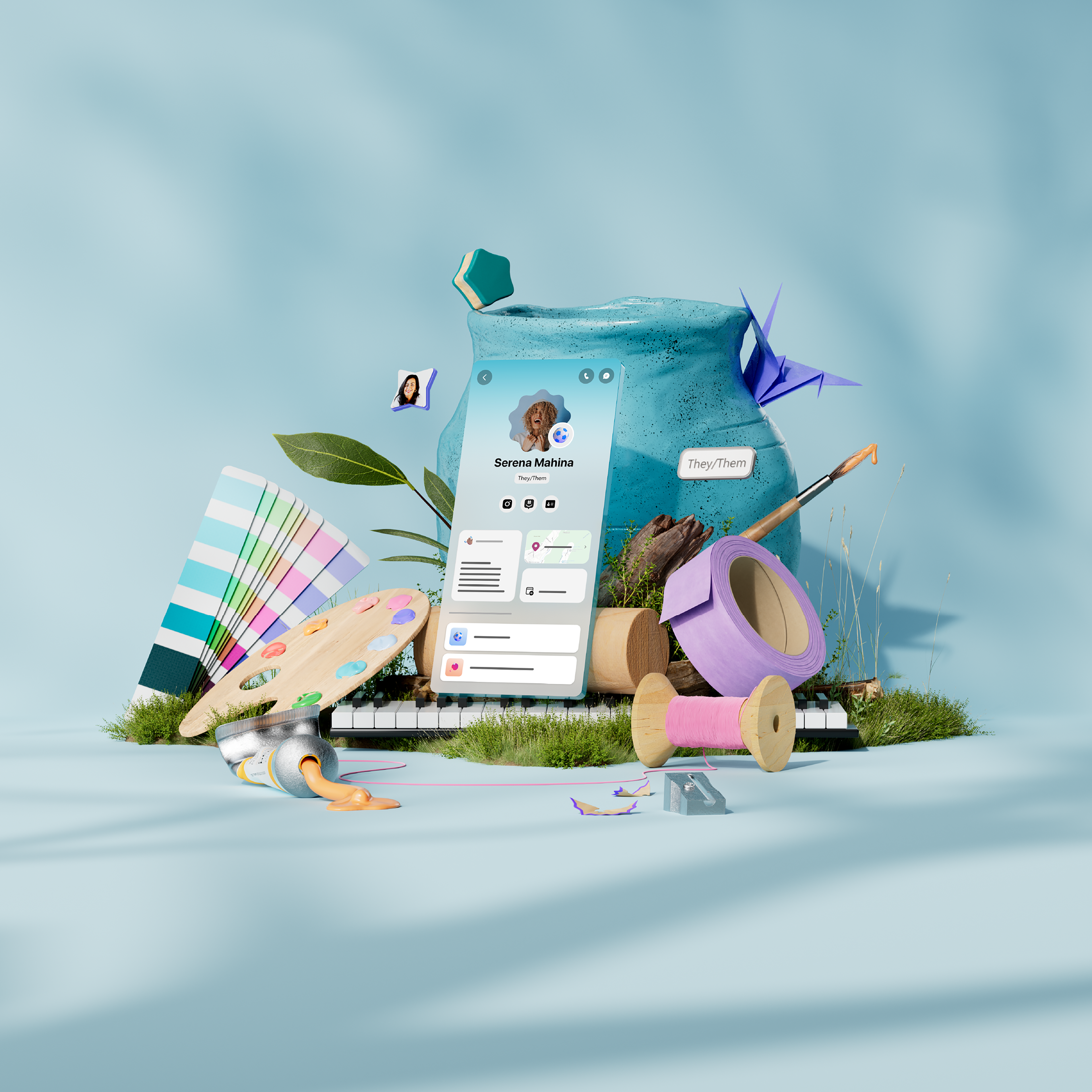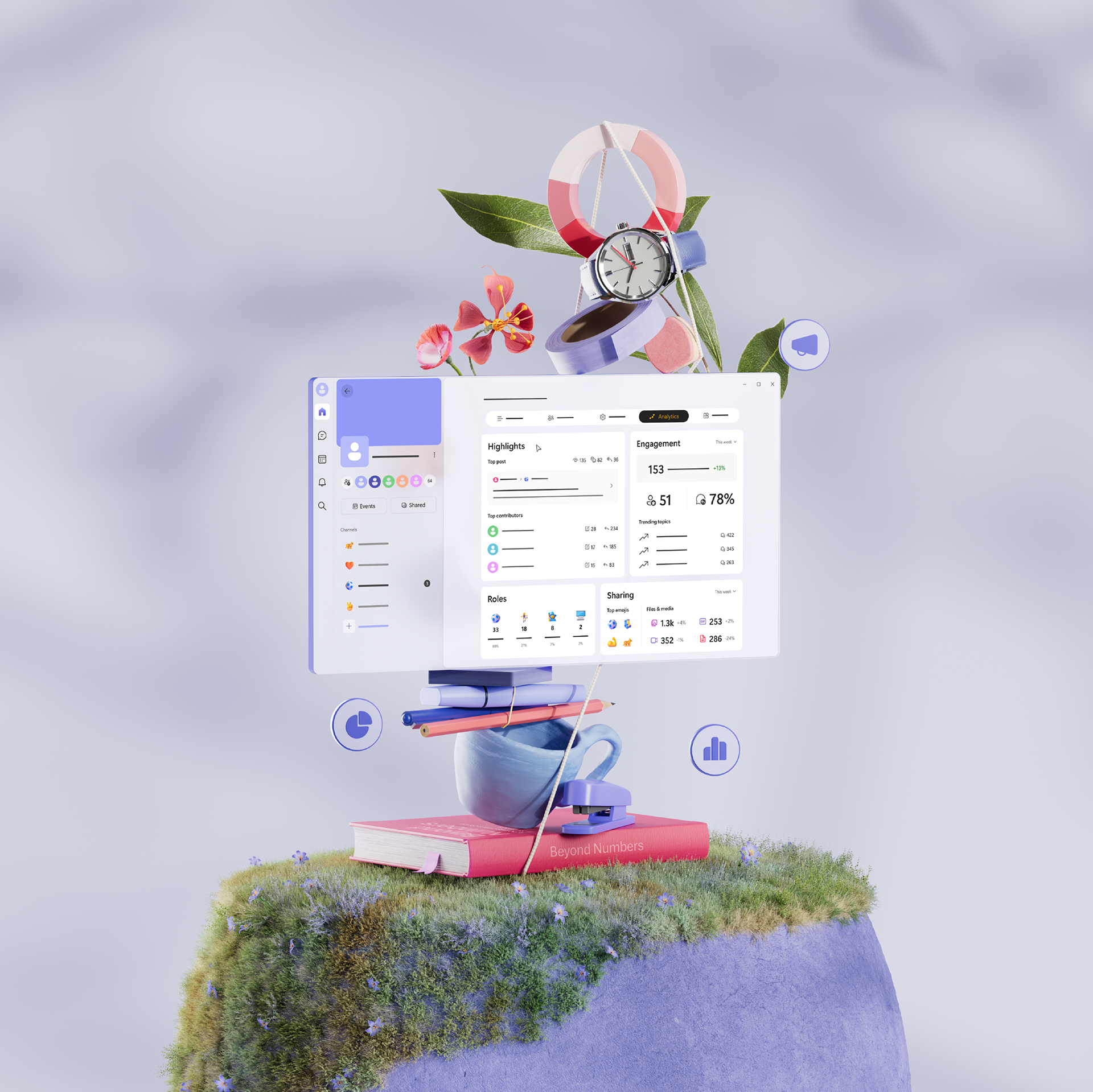 Each hero image is designed to treat the user interface as a product—placing it within relatable, natural environments and surrounding it with carefully chosen elements. These visual elements are meant to evoke belonging and shared identity, reinforcing the idea that Teams is more than a productivity tool: it’s a hub where collaboration, unity, and team spirit come to life.